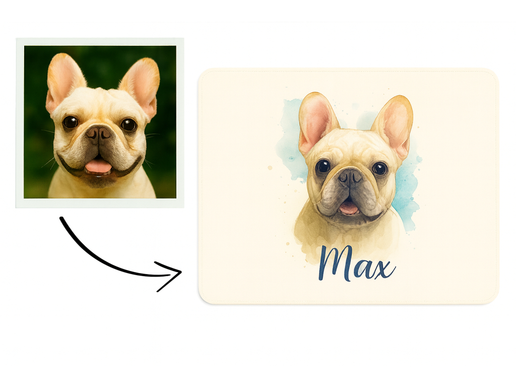 Podložka pod myš s vlastním potiskem mazlíčka v akvarelovém stylu