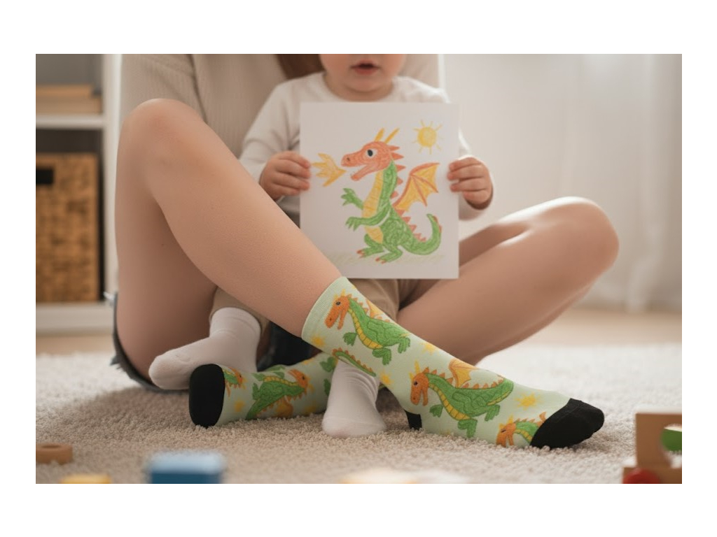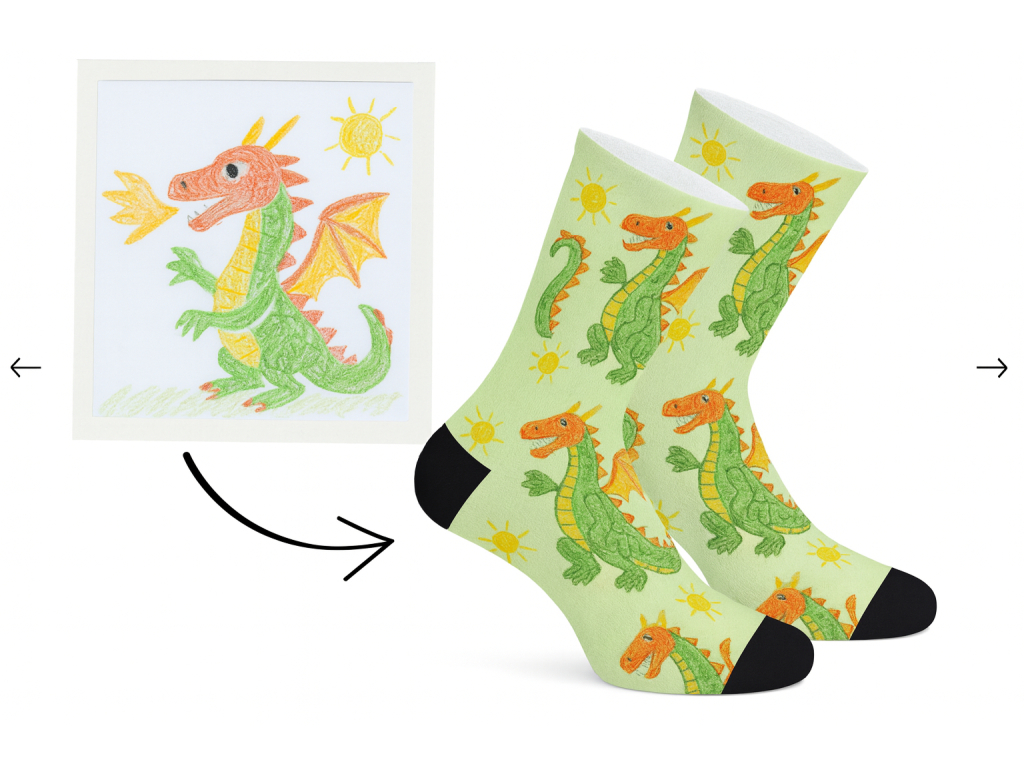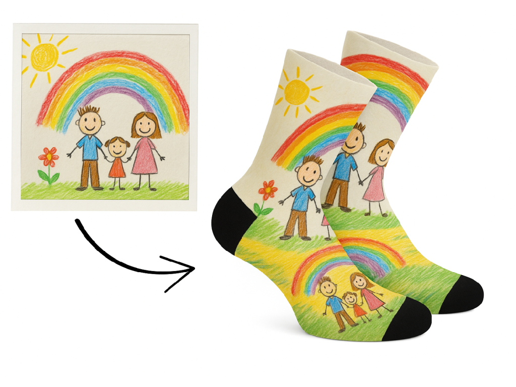 Pošlete nám jakýkoli dětský obrázek. Ručně z něj vytvoříme originální design na míru. Vzniknou stylové a unikátní ponožky z dětské kresby (opravdu personalizované vlastní ponožky s potiskem), které vyprávějí příběh.